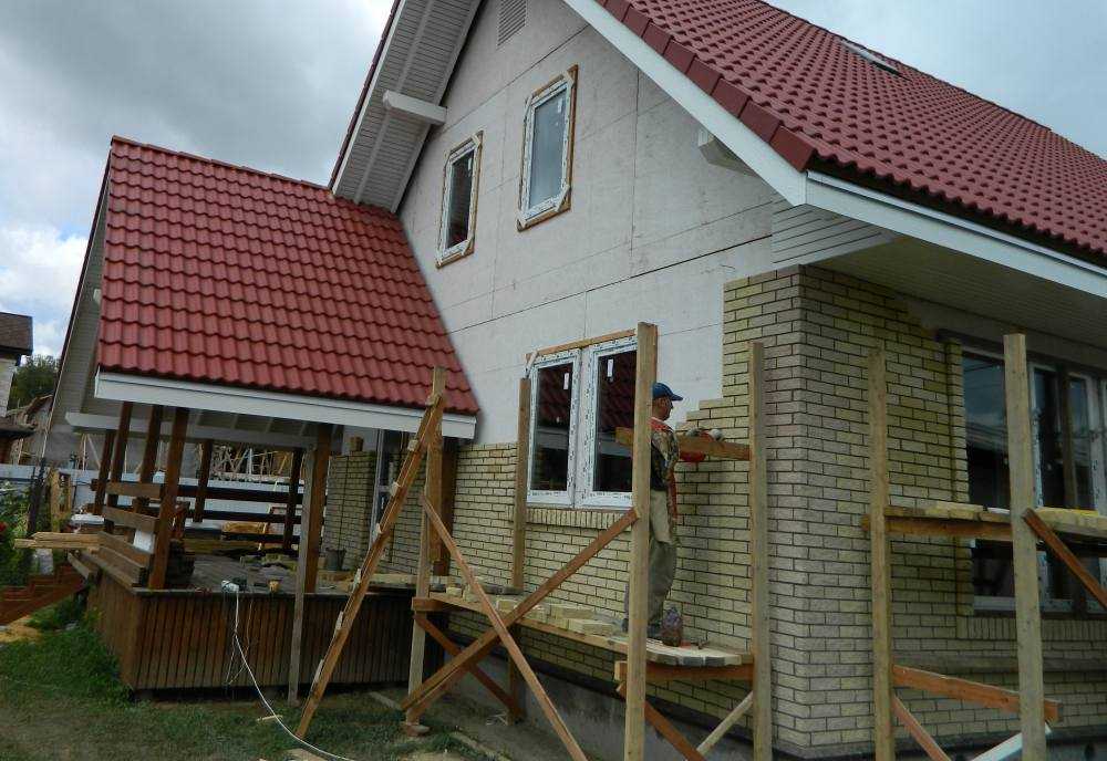 Самым удачным вариантом для обшивки являются плиты OSB. Есть и другой вариант — сборные щиты, которые уже оснащены гидроизоляцией и утеплителем. Но он дороже и сложнее в исполнении, требует спецтехники и инженерных знаний. Можно использовать сэндвич-панели, которые по сравнению с кирпичным строительством экономичнее в 10 раз.