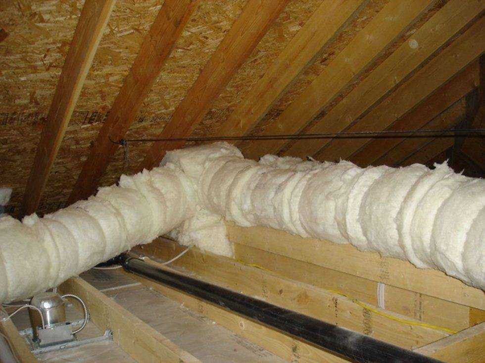 Самый дешевый теплоизолятор (что в частном секторе играет не второстепенную роль) — минеральная вата. В любом случае, утеплитель для труб, проходящих по чердаку или в подвале, также должен быть устойчивым к высоким температурам: если расширительный резервуар системы отопления установлен на чердаке, то в определенных условиях температура воды в нем может достигать высоких значений, а то и доходить до точки кипения.