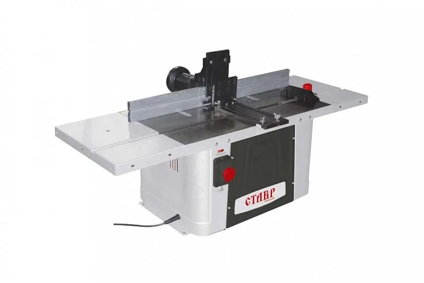 Российское изделие, обладающее хорошим соотношением между ценой и качеством. Оснащен коллекторным двигателем мощностью 1500 Вт. Станок оборудован удлиненным столом и удобным зажимом для фрезы. Некоторые детали выполнены из пластика, например, направляющая и упор, что является главным минусом этой модели.