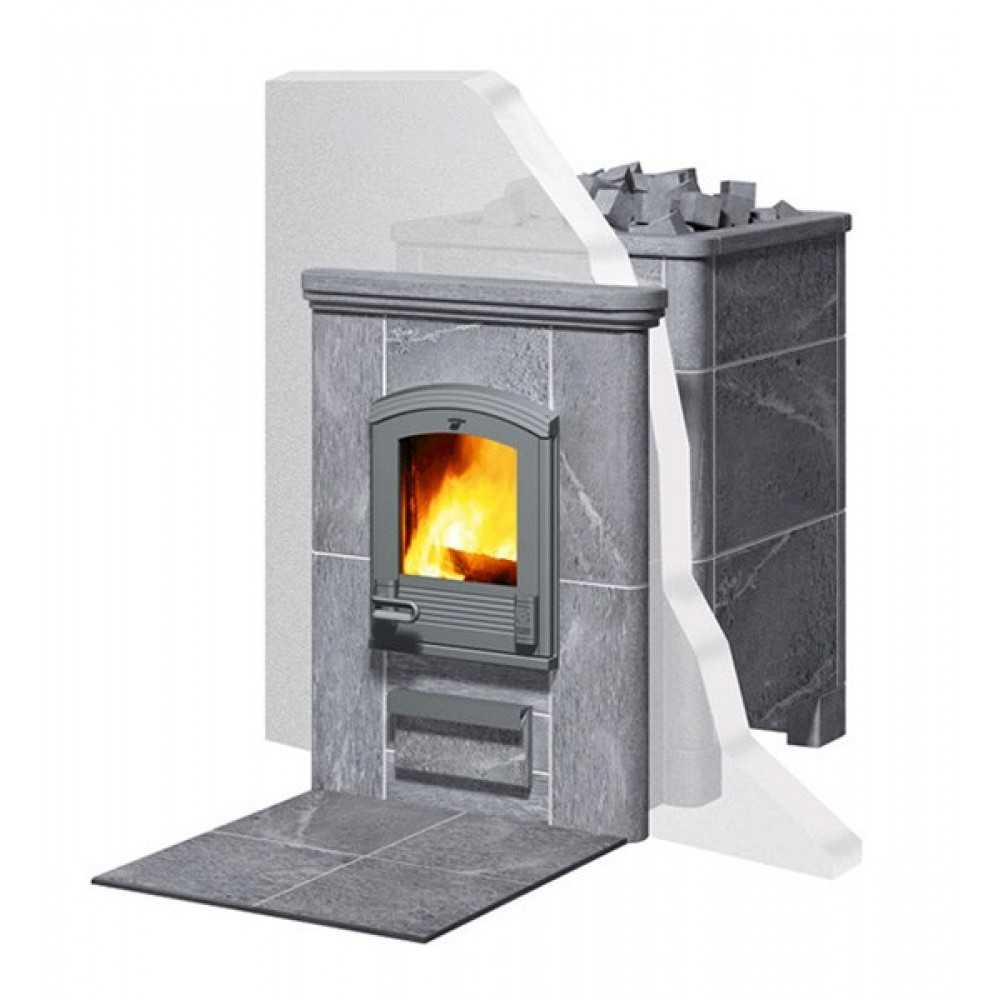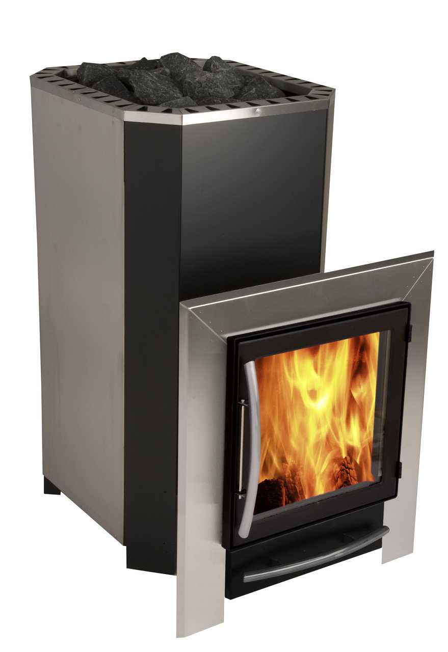 - Тепловая энергия устремляется вверх. Обычно финские агрегаты оснащены двумя независимыми каналами сгорания топлива. Камни, уложенные в каменке, вмещающей 20…110 кг, разогреваются.