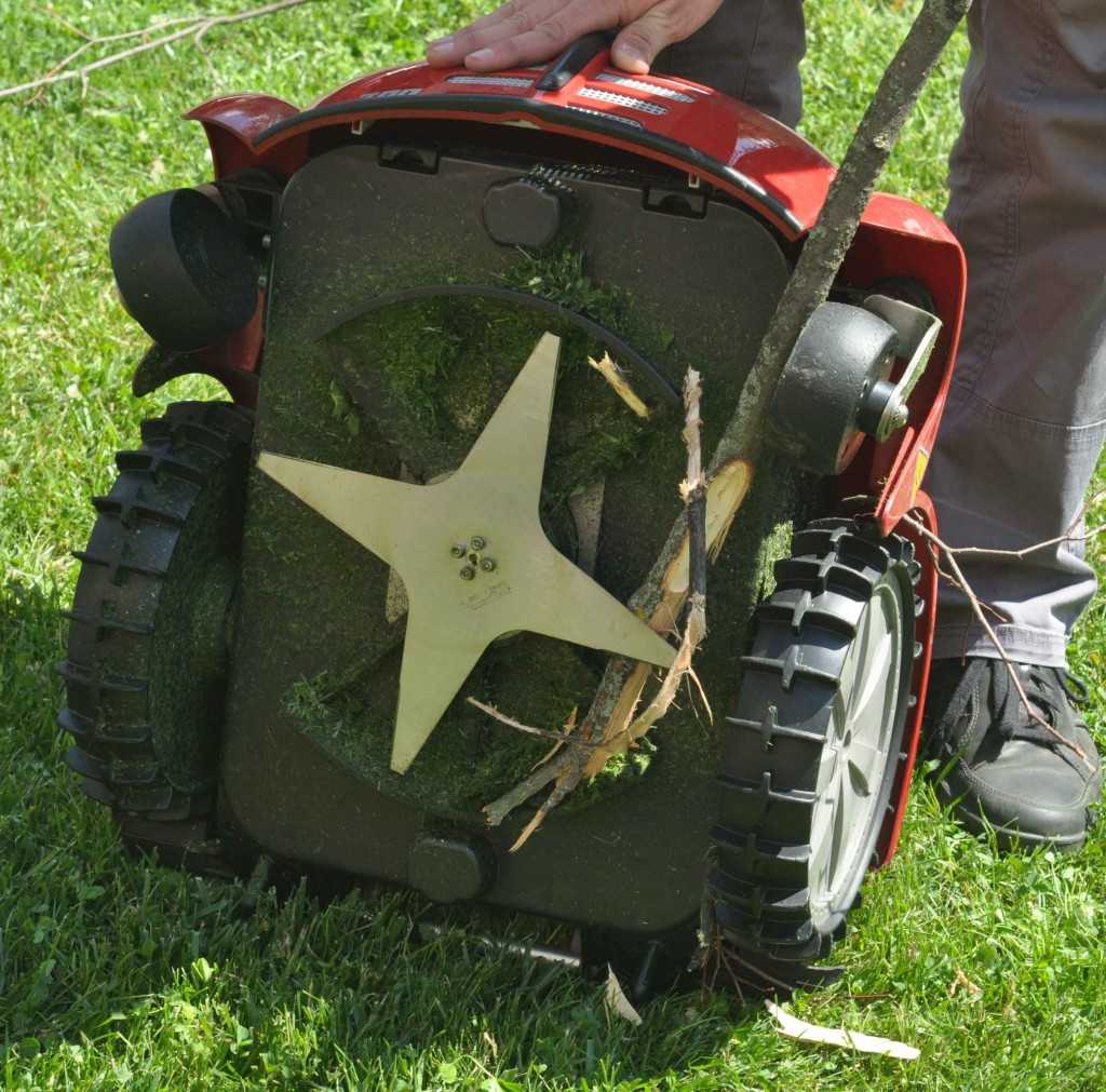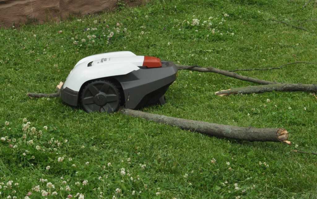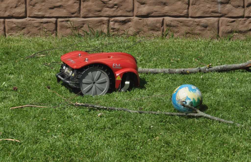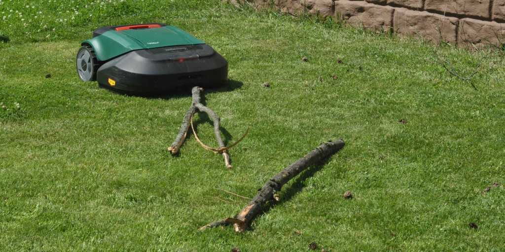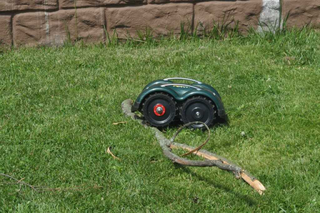 Отметим только, что мелкие прутики и шишки измельчаются почти также, как и трава. Детские мячики просто роботами просто катаются по траве. Маленькие газонокосилки заехать на толстые палки не смогли и тем самым себя обезопасили. Robomow RS612 вообще все нипочем — благодаря своей юбке бампера до земли по излишне толстым палкам он скользит и не допускает критического попадания инородного тела в ножи. Небольшой казус случился только с Caiman L200R: крупная палка неудачно попала под косилку и заклинила нож. После извлечения, что называется «палки из колеса», косилка продолжила работу как ни в чем не бывало. Поэтому общая рекомендация от нас: следите за предметами на газоне, для некоторых машин они представляют угрозу.