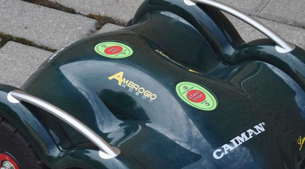 Данная косилка является уникальным образцом современного роботостроения. Это один из очень немногих аппаратов, которому не нужен провод, чтобы «понимать» где надо косить, а где не надо. Итальянская компания Caiman знаменита тем, что запатентовала хитрую систему емкостных датчиков, способных очень точно распознавать наличие травы под собой. Таким образом данной машине не нужен провод, просто необходимо разместить робота на газоне и включить его. Дальше он постарается выкосить все травяное покрытие, которое ему будет доступно (кстати в пределе это может быть участок площадью 400 кв.м.). Есть, правда и обратная сторона этих прелестей. Необходимо быть аккуратным с такими сооружениями на участке, как бассейн или цветочные клумбы — в таких случаях требуется обеспечивать широкую нейтральную полосу без травы, чтобы робот успел остановиться, иначе может куда-нибудь нырнуть или выкосить что-то лишнее. Также в отсутствие провода работа с несколькими зонами (если у вас газон состоит из двух разделенных частей) в автоматическом режиме уже невозможна. Выкосить можно и отдельные участки, но потребуется для этого переносить косилку с одной на другую, а это уже дополнительные действия пользователя и некоторое разочарование — от робота ожидаешь большей автономности.