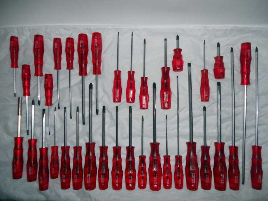 Малый кейс таких инструментов включает в себя несколько размеров крестообразных и плоских отверток. Средняя комплектация содержит дополнительные приспособления для установления фазы, а также устройства с изоляционным покрытием и намагниченными наконечниками.