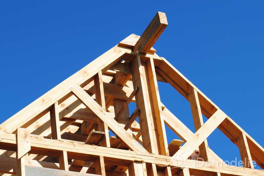 Таким образом, к мауэрлату или к балкам перекрытия крепиться стропильная ферма, которая в свою очередь соединяет прогоны, стропильные ноги, подкосы и другие детали. Стропильные ноги в свою очередь соединяются ригелем для придания жесткости конструкции.