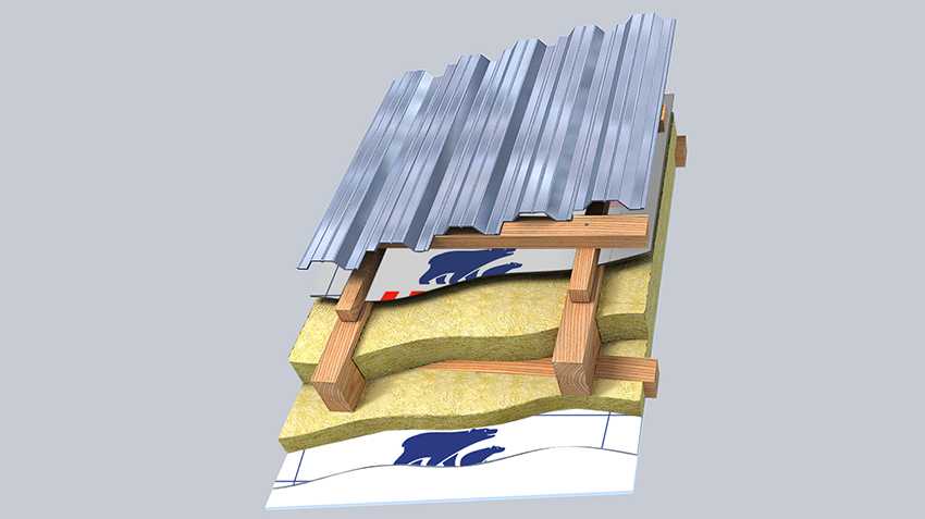 При установке гидроизоляции оставляют зазор в 4 — 6 см между пленкой и теплоизоляционным материалом. Это необходимо для беспрепятственной циркуляции воздуха, благодаря которой испаряется влага. Чтобы обеспечить необходимый вентзазор, на стропила набивают контробрешетку из брусков.