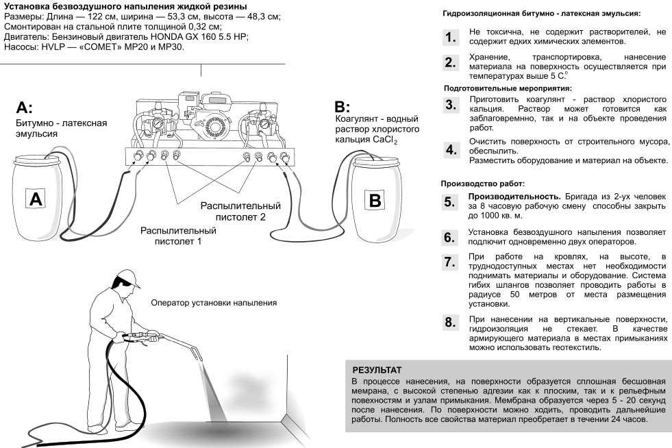 Для двухкомпонентной резины необходимо оборудование – напыляемая гидроизоляция.