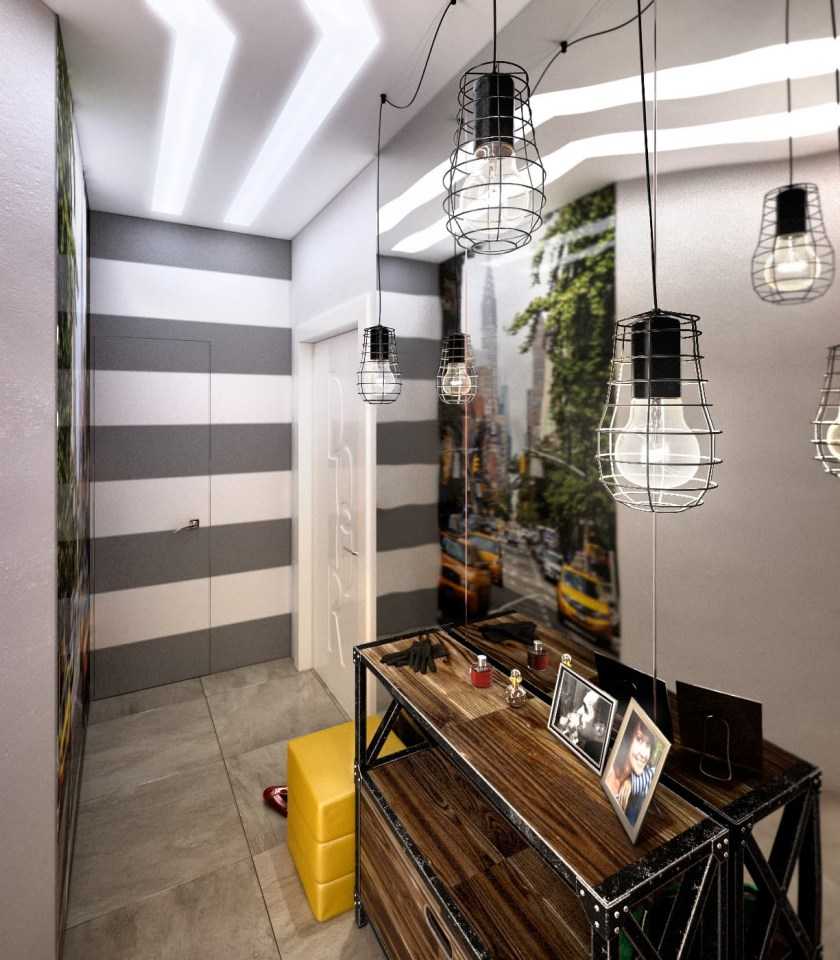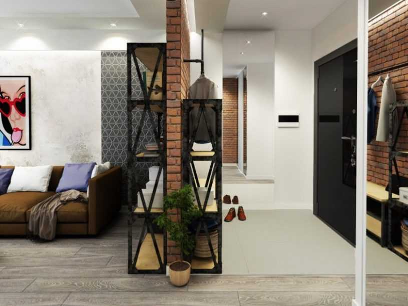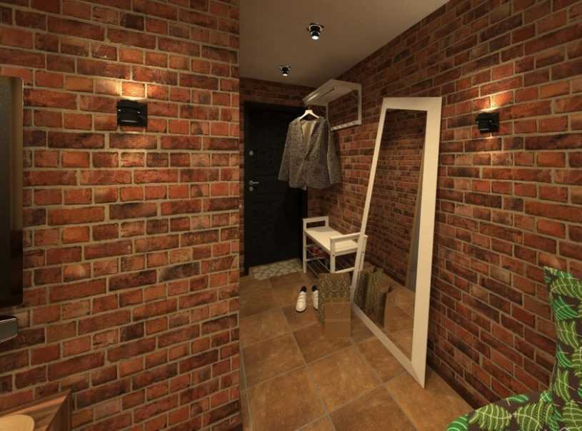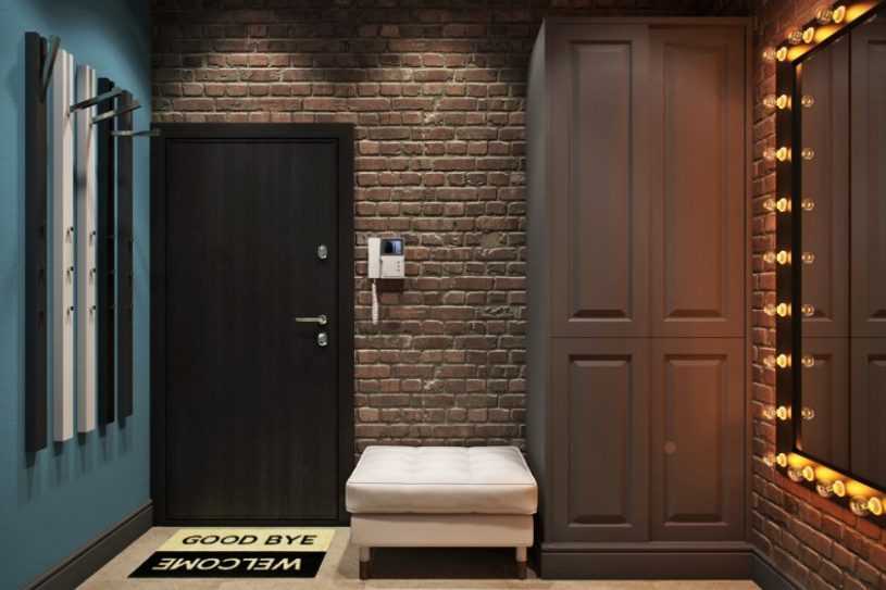 Для стен прихожей в стиле лофт выгоднее всего использовать моющиеся обои, имитирующие кирпич. Также можно применять кирпич для облицовки, камни с незначительным рельефом, необычную окраску либо штукатурку, придающую поверхности шершавость.