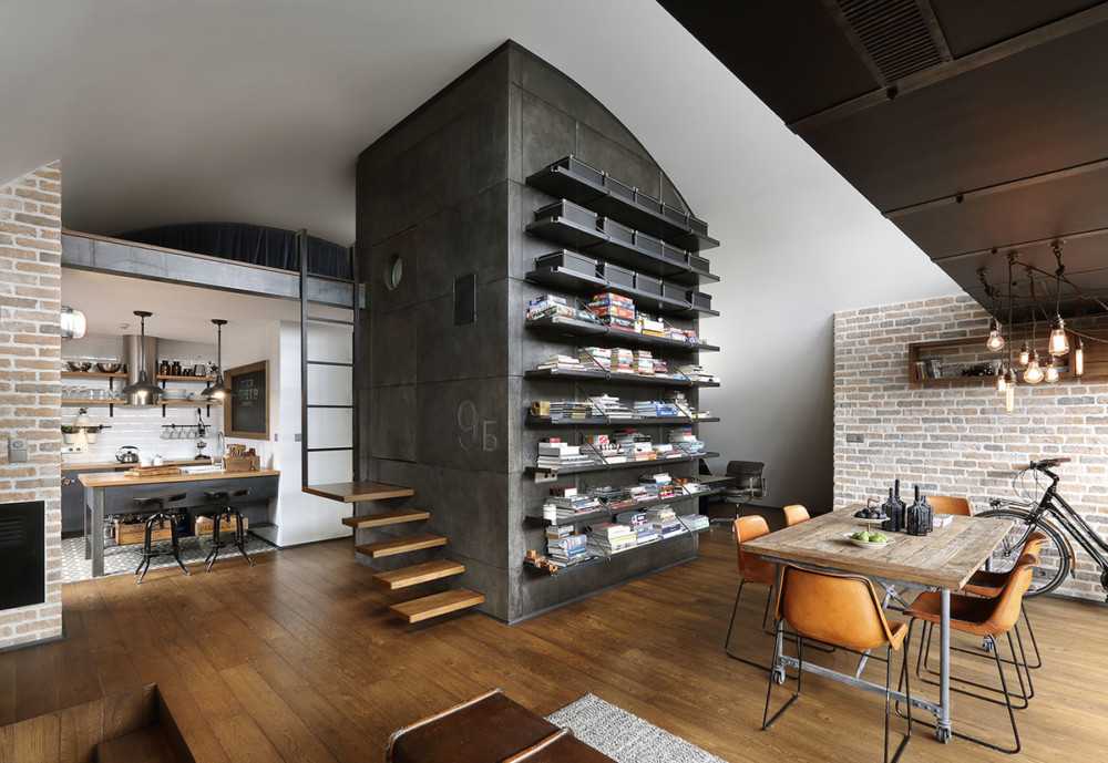 Многие задумываются о том, что это такое – стиль лофт в интерьере и подойдет ли это мне? Если вам нужно создать обстановку, включающую старые стулья, ультрасовременную мебель и ненужный стол, то гостиная в стиле лофт идеально для этого подойдет. Это направление подразумевает свой особый хаос, который не нужно нарушать, используя встроенную мебель. Здесь будет прекрасно смотреться классический прямоугольный шкаф и диван-книжка (или софа-аккордеон).