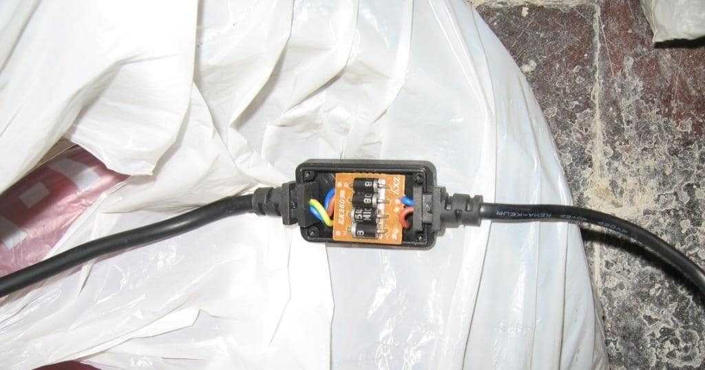 1. Перед началом работы убедитесь, что кабель сухой. Подключите его целиком к сети через адаптер и проверьте, работает ли он.