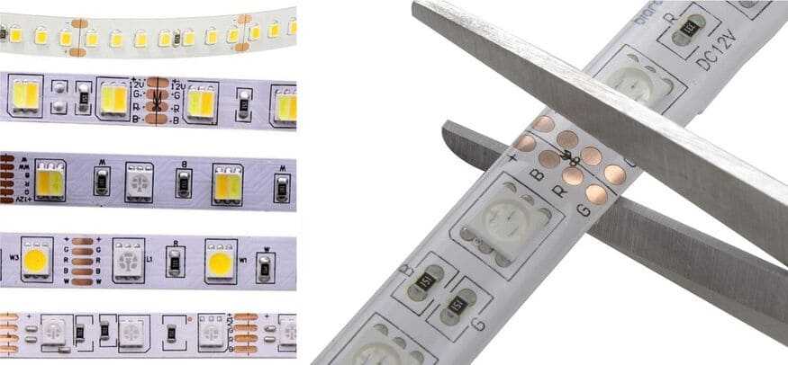 Место для разреза светодиодных лент на 12 вольт различных конструкций