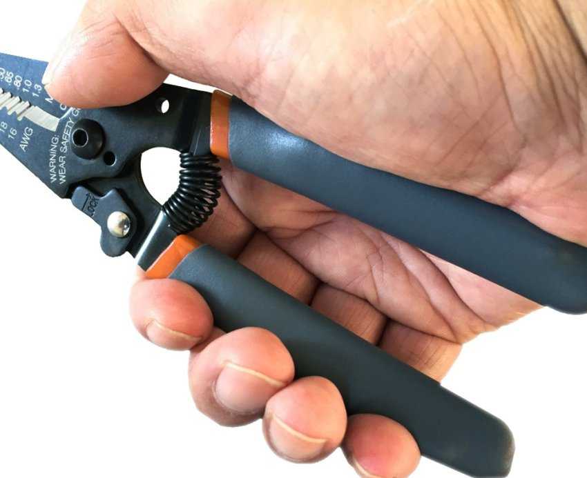 Выполнение любого кабельного соединения всегда начинается со снятия изоляции с концов проводов. Для этих целей также существует отдельный вид инструмента, именуемый «стриппер». С его помощью удаляется верхний слой, опасность повреждения жилы отсутствует. Как вариант, можно приобрести кримпер, у которого есть элементы, позволяющие производить зачистку. Это отверстие, с одной стороны имеющее лезвие. Вставив провод и прокрутив его один раз, можно получить желаемый результат.