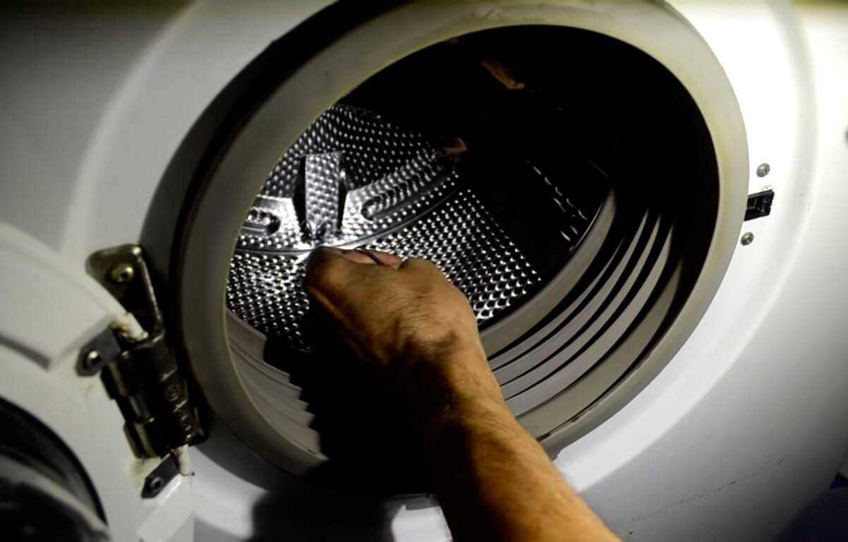 Данный дефект определить просто: при вращении барабана слышен шорох, потрескивание или другой подобный звук. Бывают ситуации, когда барабан плохо вращается или его совсем заклинивает. В этом случае выключите стиральную машину, слейте воду из бака, освободите барабан от белья и внимательно осмотрите его изнутри, подсвечивая поверхность фонариком.