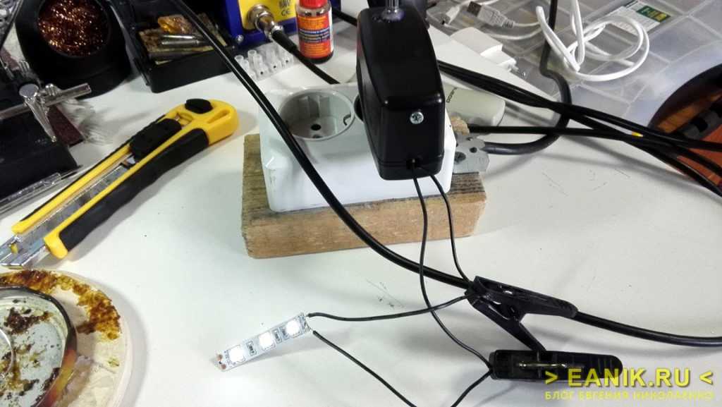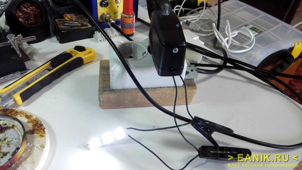 Сегменты светодиодной ленты smd 5050 на боковой поверхности блока питания