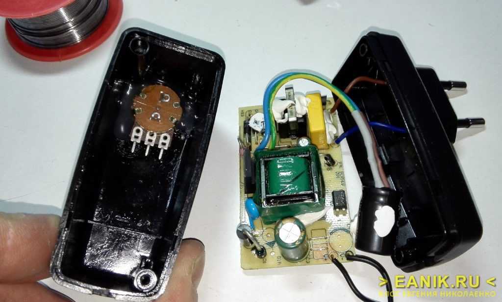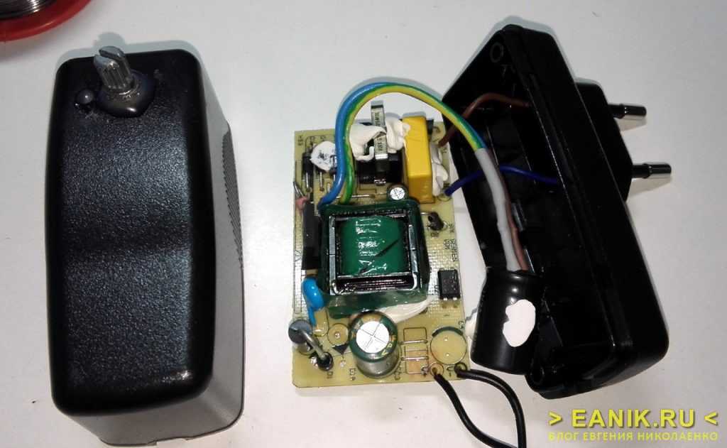 А точнее разборку блока питания В крышке корпуса (слева на фото) высверливаем отверстие для установки переменного резистора.