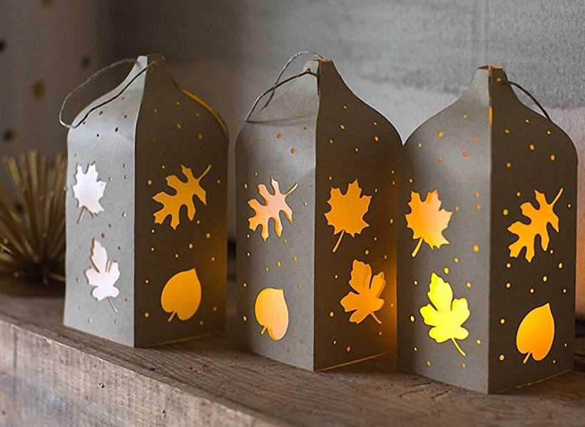 Светильник на батарейках получиться сделать из старой коробки. Для этого вам понадобиться прорезать отверстия, через которые свет будет попадать в помещения. Удобнее всего вырез получиться выполнить скальпелем.