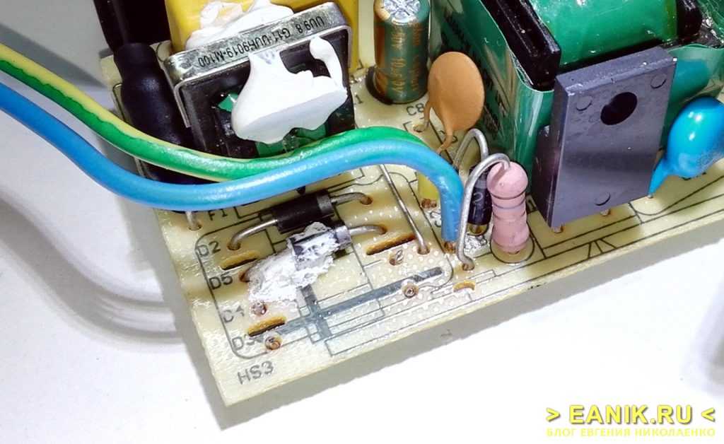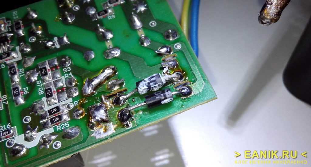 Попробовав закрыть крышку блока питания выяснилось, что также мешают пара диодов.