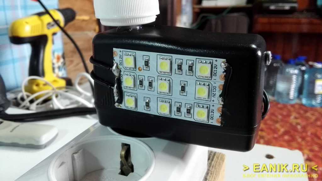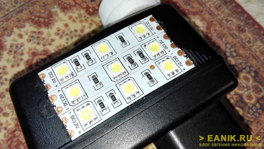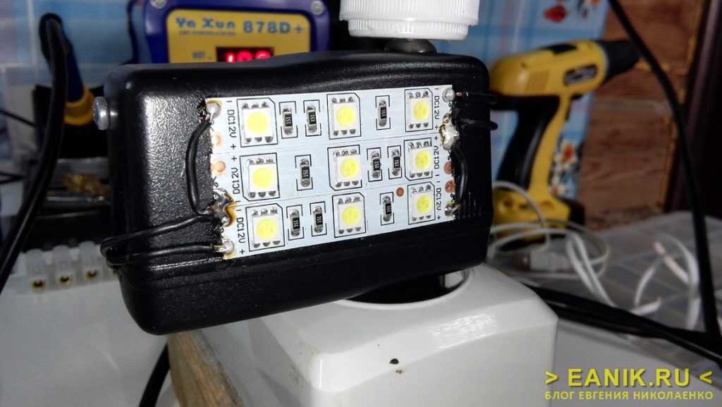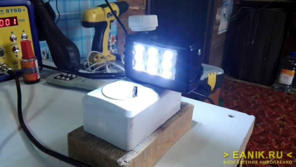 Самостоятельно можно сделать не только переносной, но и мощный стационарный светодиодный фонарь, который легко установить в подходящем месте. При этом желательно учитывать возможность подключения к прибору питания от общей электросети.