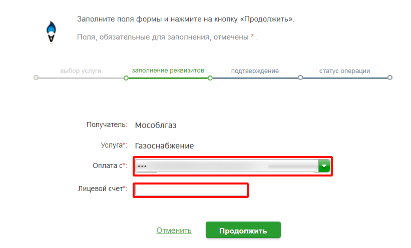 - Укажите ваш номер лицевого счета, после чего нажмите на кнопку «Продолжить»