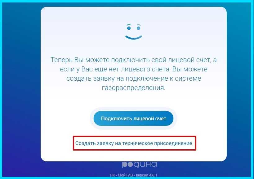 Если вы еще не являетесь клиентом компании, то вам предлагается подключить лицевой счет. Для этого нажмите на кнопку «Создать заявку на техническое присоединение»