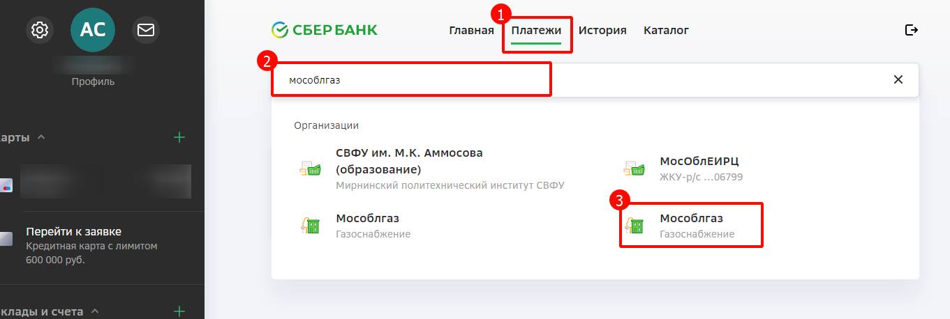 Для тех кто активно пользуется сервисом Сбербанк.Онлайн предусмотрена возможность пополнения баланса лицевого счёта. Авторизуйтесь в системе и перейдите в раздел “Платежи”, расположенном в верхней строке меню. Оплата через Сбербанк
