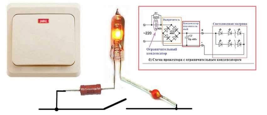 Это достигается благодаря тому, что ток для подзарядки конденсатора уйдет на нить накала; Существуют выключатели, которые имеют обязательную подсветку, нужную для какой-либо цели