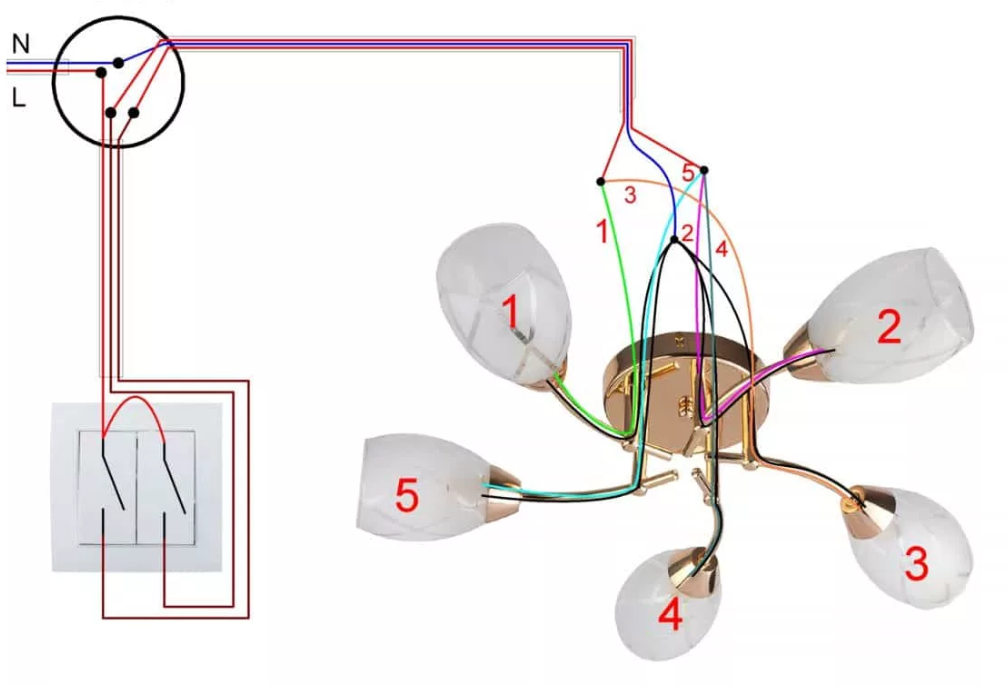Подключение 3-х или 4-х проводной люстры к двойному выключателю