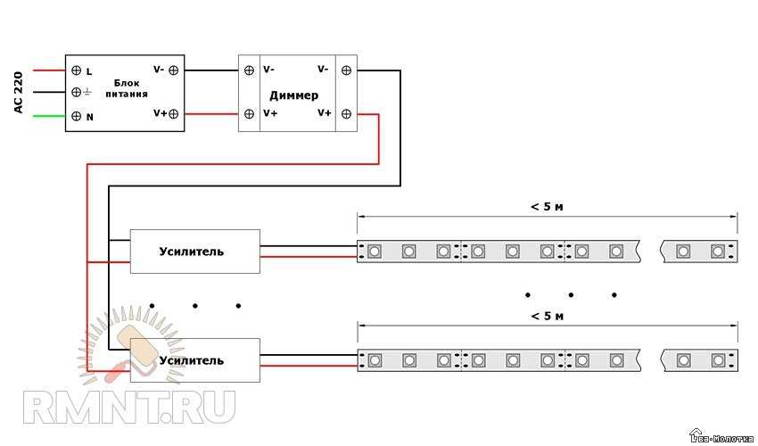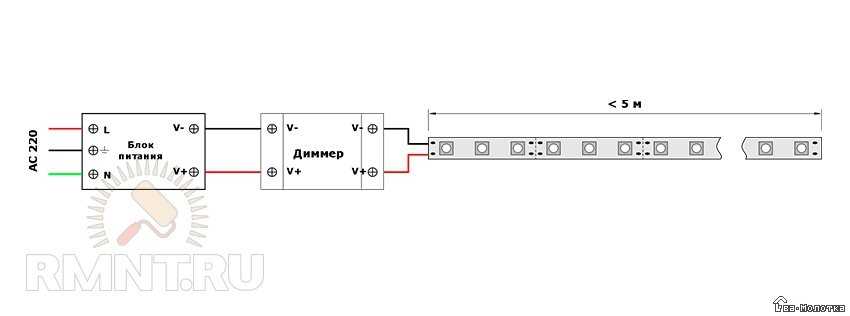 Подключение светодиодной ленты с использованием диммера для регулировки яркости