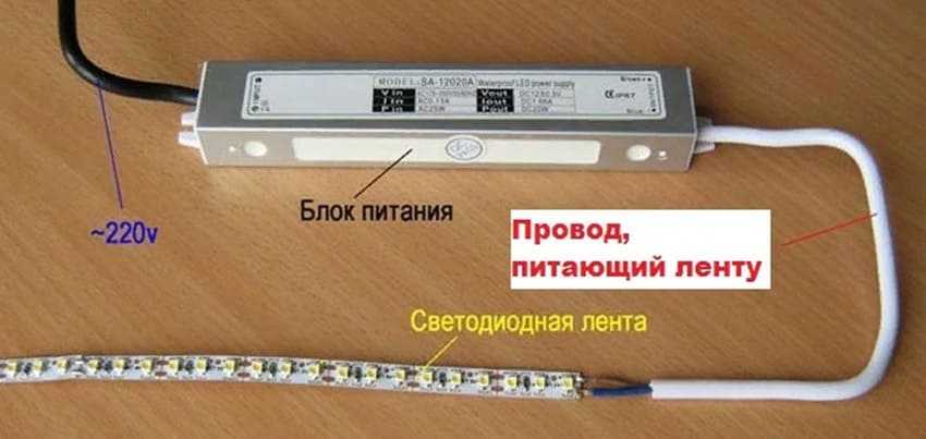 Номиналы напряжений написаны на корпусе БП и на самой ленте. Сигнальный провод всегда красный, его подключают к плюсу. Заземляющий может быть черным или синим. Неисправность блока питания можно проверить, подключив к его выходу автомобильную лампочку (не галогеновую).