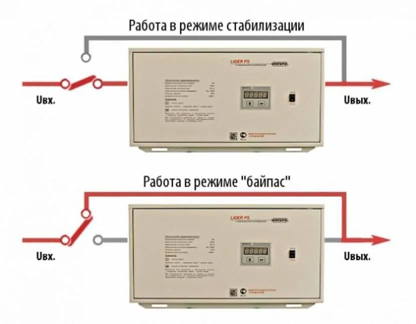 У некоторых регуляторов возможен автоматический перевод в обход, при стабильном напряжении подающей сети. В этой ситуации стабилизация электроэнергии не требуется. После переключения устройство контролирует параметры электрической энергии и включает режим стабилизации при необходимости.