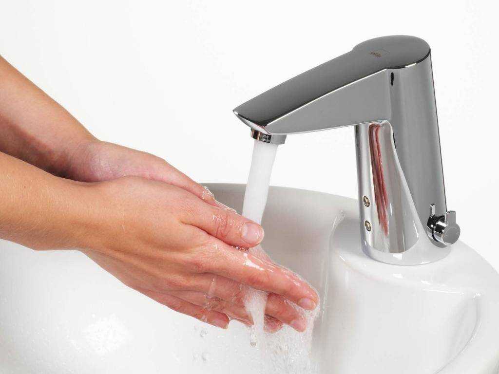 - В отличие от однорукого и двухрычажного поворотного переключателя, процесс смешивания полностью автоматизирован и контролируется термостатом. Благодаря этому полностью отсутствует вероятность причинения ожога при неправильной установке температуры. Таким кнопочным смесителем можно пользоваться даже самым маленьким детям.