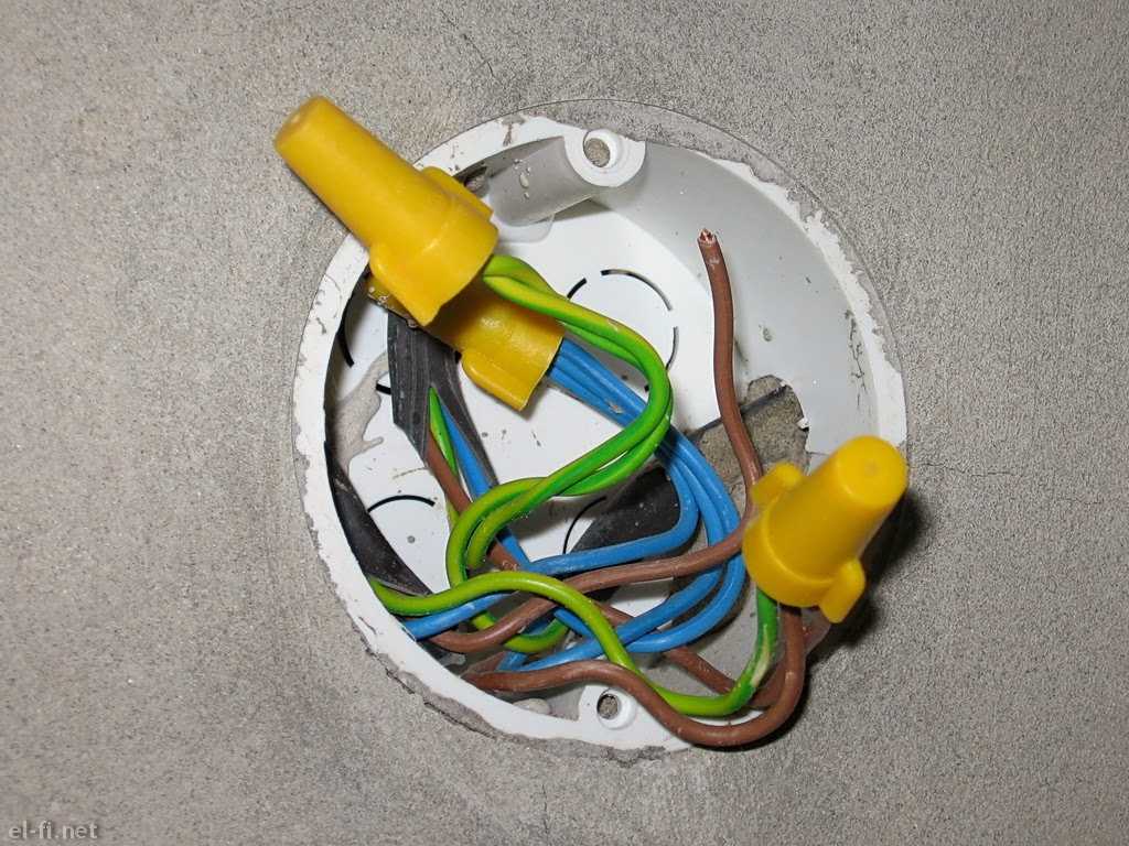 Нулевые жилы проводов, идущих на светильники, должны в распределительной коробке соединяться с нулевым проводом питающей сети.