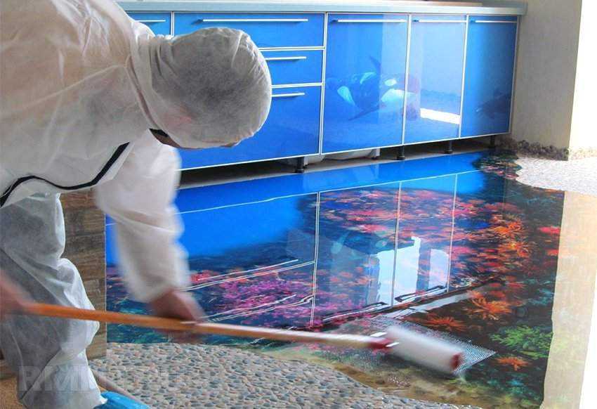 Последний этап оформления наливного пола 3D – нанесение финишного слоя, которое поможет подчеркнуть эффект объемного изображения и надолго сохранить покрытие от царапин, вмятин, деформации. Для полного соблюдения технологии потребуется: