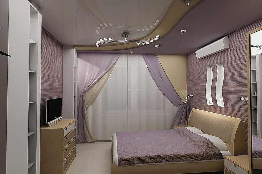 Если спальня маленькая, достаточно будет установить верхний свет и настольные светильники на прикроватных тумбах.