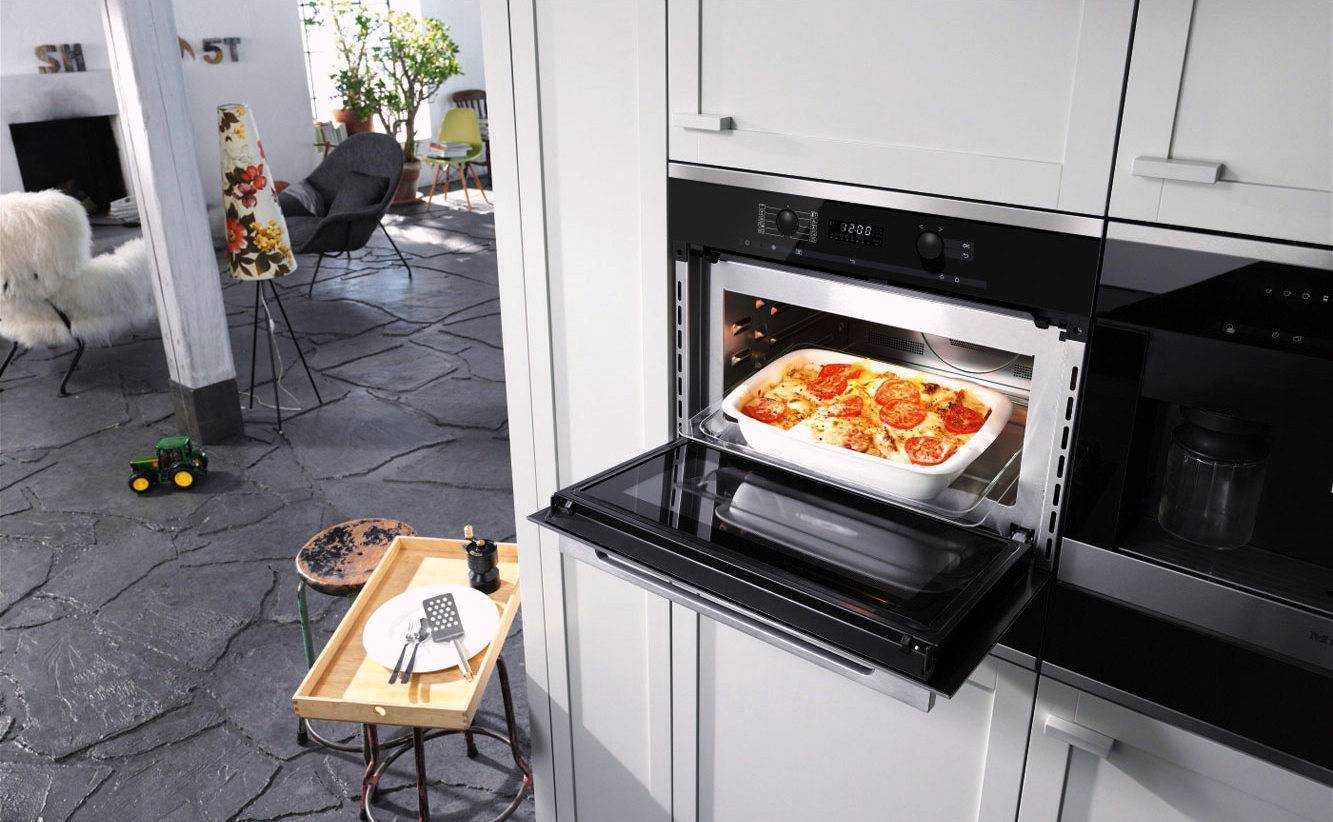 Электрический духовой шкаф может быть укомплектован встроенным СВЧ-модулем. В результате вы получаете два прибора в одном, который можно использовать и как духовку, и как микроволновку. Более того, при желании вы можете комбинировать обычный нагрев с микроволновым, что позволяет ощутимо сократить время приготовления пищи.