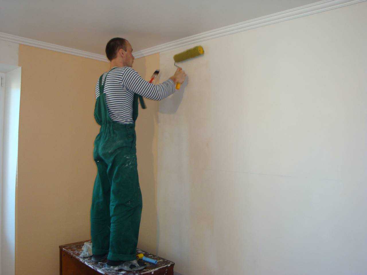 Прежде чем наносить грунтовку, нужно осуществить некоторые работы по подготовке стен. На стенах могли остаться старые шпалеры, их необходимо снять.