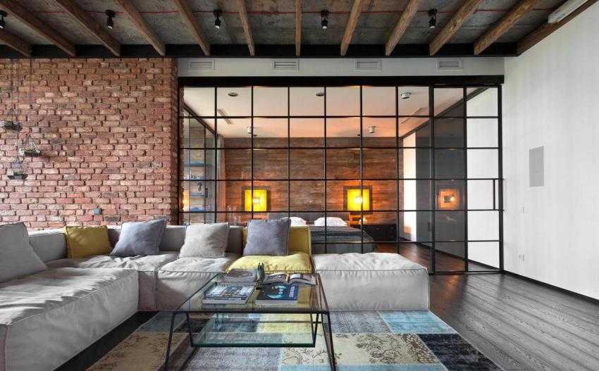 Если поверхность в доме не оштукатуренная и нет шпаклевки, тогда это готово решение для дизайна квартиры. Стоит её очистить, провести ряд подготовительных работ и покрыть бесцветным лаком.