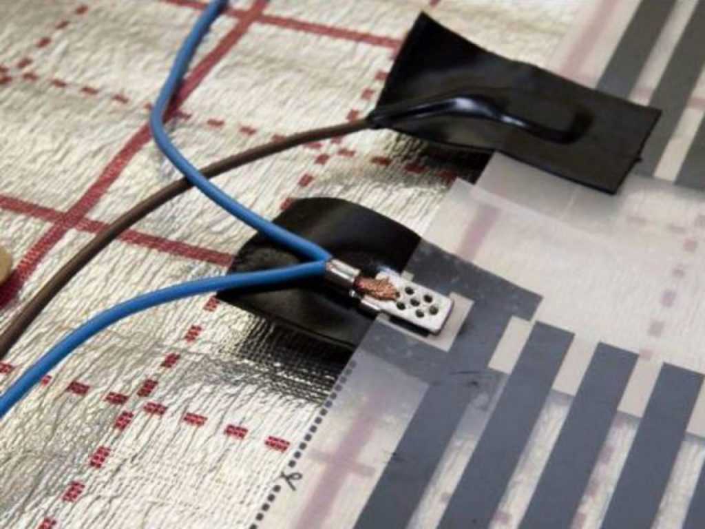 Подключение инфракрасного теплого пола выполняется после всех процедур. Установка пленочного теплого пола под ламинат и ковролин не требует бетонной стяжки.
