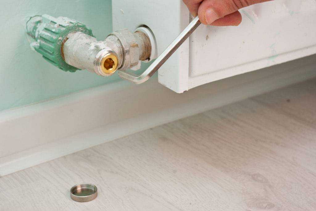 После чего следует медленно открыть запорную арматуру, осторожно открутить головку воздушного клапана и держать ее открытой до тех пор, пока не появится вода. Это означает, что радиатор полностью наполнился водой, и в нем отсутствует воздушная пробка. Как только появится вода, клапан нужно будет закрыть