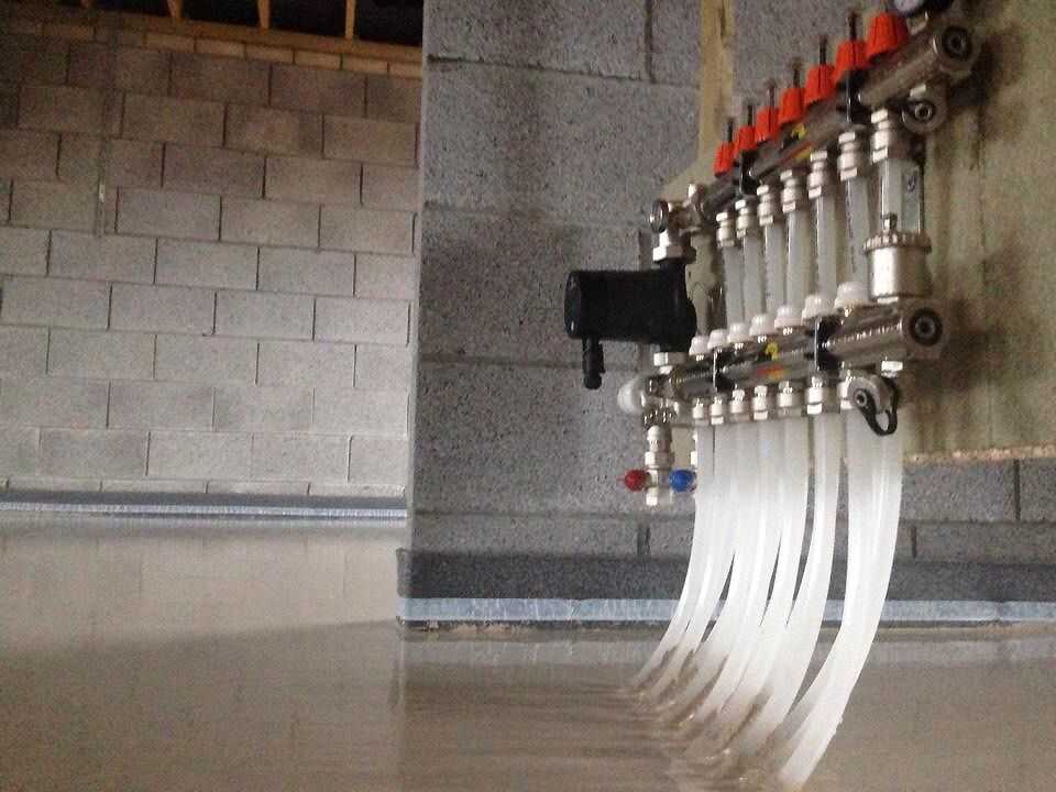 Концы уложенных труб выводят к коллекторному узлу, подключают к соответствующим патрубкам и фиксируют с помощью специальных хомутов. Систему заполняют водой и оставляют на некоторое время. Чтобы испытание теплых полов от парового отопления было более эффективным, а все дефекты стали явными, необходимо подать теплоноситель под высоким давлением и с температурой около 50 градусов. При отсутствии проблемных участков можно заливать чистовую бетонную стяжку.