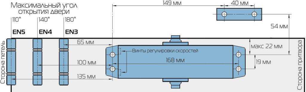 - Для максимального удобства потребителей разработчики таких механизмов часто предусматривают определенный диапазон их возможностей. Например, в технической документации может быть установлены пределы «ЕN-2 ÷ ЕN-4». Конкретная величина усилия в таком случае будет определяться лишь особенностями монтажа доводчика.
