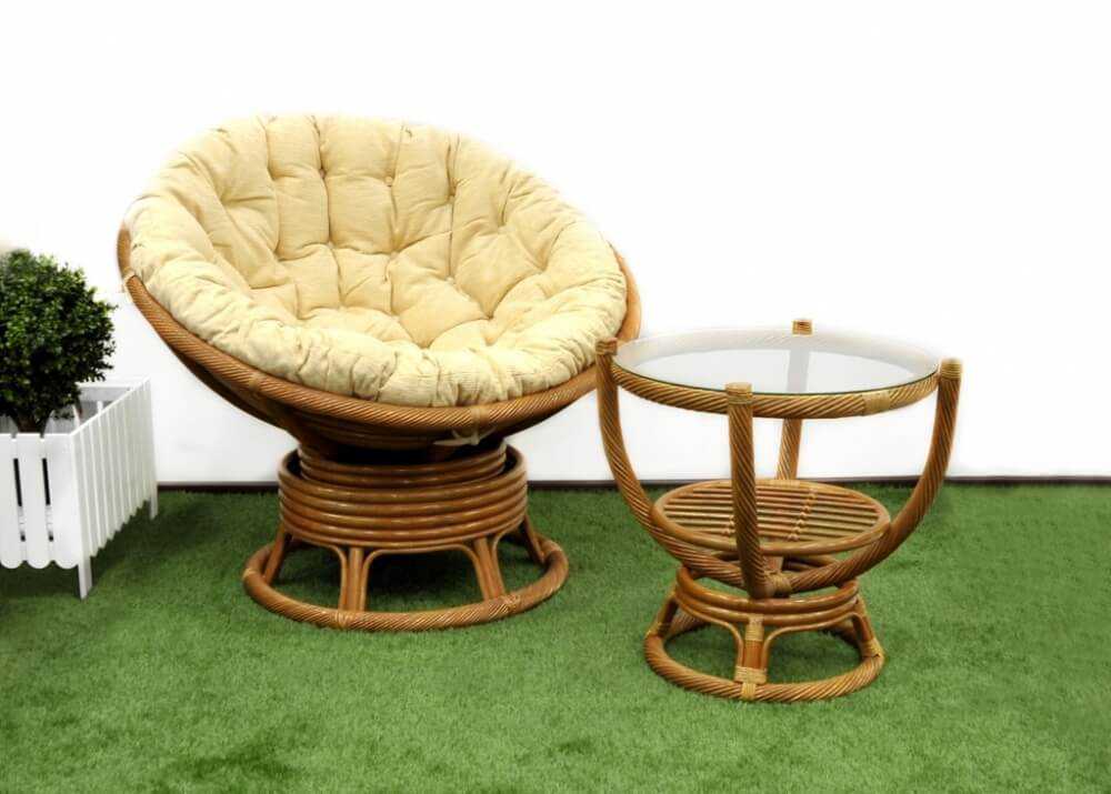 Если выбрана модель из ротанга, ее нужно внимательно осмотреть. Должно быть минимальное количество стыков (идеальный вариант, когда он вообще один). Также не допускаются надорванные плетения, ведь в таком случае кресло долго не прослужит. А вот скрип – это нормально для ротанговой мебели;