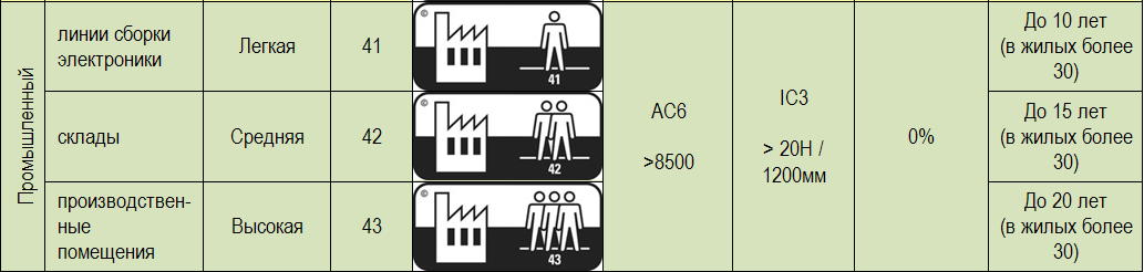 - Коммерческий (производственный) материал, обозначающийся маркировками от 41 до 43. Данный линолеум имеет плотную, но прозрачную защитную пленку из полиуретана, достигающую 0,7мм толщиной. Такое покрытие хорошо служит в цехах промышленных предприятий, логистических центров, складов. Высокие эксплуатационные возможности этого класса не востребованы в жилых помещениях, не имеющих настолько повышенной нагрузки.