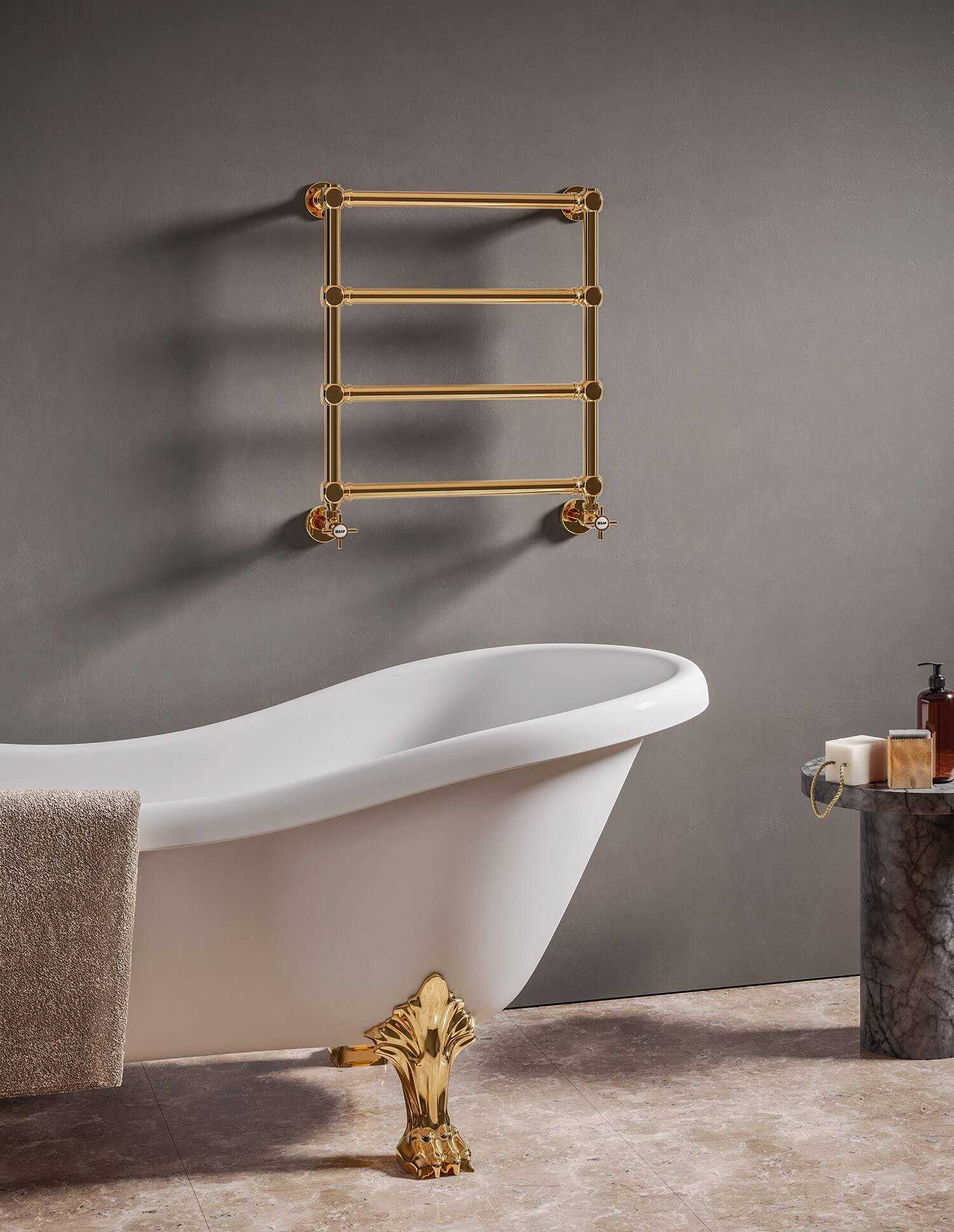 Водяной полотенцесушитель из латуни с покрытием под золото. IRSAP