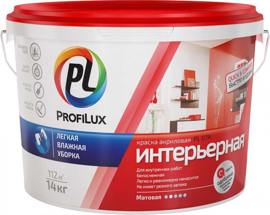 Страна производитель – Россия. Латексная декоративная краска предназначена для окраски стен и потолков в помещениях с умеренной влажностью. Может наноситься на все виды поверхностей, включая бумажные и виниловые обои. Покрытые ЛКМ стены имеют глубокоматовые поверхности. Время высыхания – 3 дня.