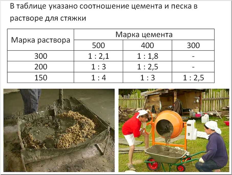 Приготовление цементно-песчаной стяжки