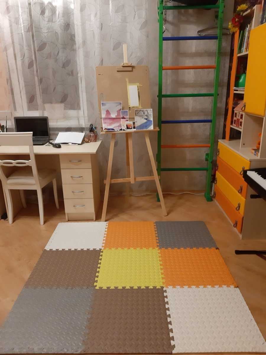 + Мягкий пол можно уложить как в виде коврика на имеющееся покрытие, так и застелить полностью комнату.