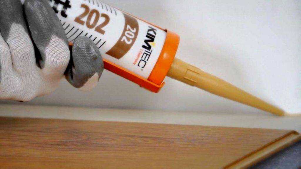 | Герметизирующая мастика (герметик) | Главное предназначение – защитить стыки от влаги. Прозрачный. Основным компонентом является силикон. Благодаря его применению швы становятся практически незаметными. Используется в момент укладки. В его применении нет ничего сложного. Достаточно открыть тюбик и нанести содержимое на панель с замками. После ламели соединяются, и замок защелкивается. Выступивший герметик удаляется. |