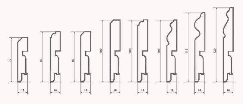 - Размер. МДФ плинтус может быть широкий и узкий. Высота изделия колеблется в пределах 4-12 см, а длина — до 3м. Учтите, что широкие элементы применяются только в том случае, если в доме высокие потолки.