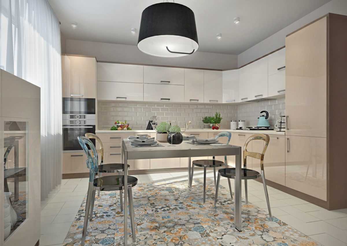 С помощью декора можно зонировать помещение, выделив обеденную зону или определив рабочую поверхность. Рисунок пола может сочетаться с оформлением потолка, что привнесёт в интерьер дополнительную гармонию.