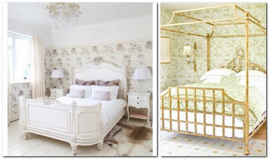 - для того чтобы добиться максимального сходства со стилем, в спальне нужно по самому низу обоев пустить кайму с растительным принтом. Это придаст особенную атмосферу;